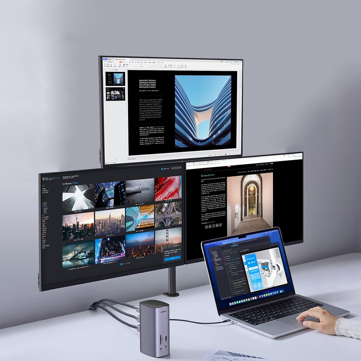Featuring 12 versatile ports, the UGREEN Revodok Pro 12-in-1 Type-C Docking Station allows you to connect multiple devices, improving workflow efficiency and reducing cable clutter. the UGREEN Docking Station is perfect for multitaskers & power users due to its triple display output support – allowing for even more productivity across extended displays. Whether you’re using macOS or Windows, the station ensures smooth compatibility. It even supports the latest MacBook M1 and M2 chips.