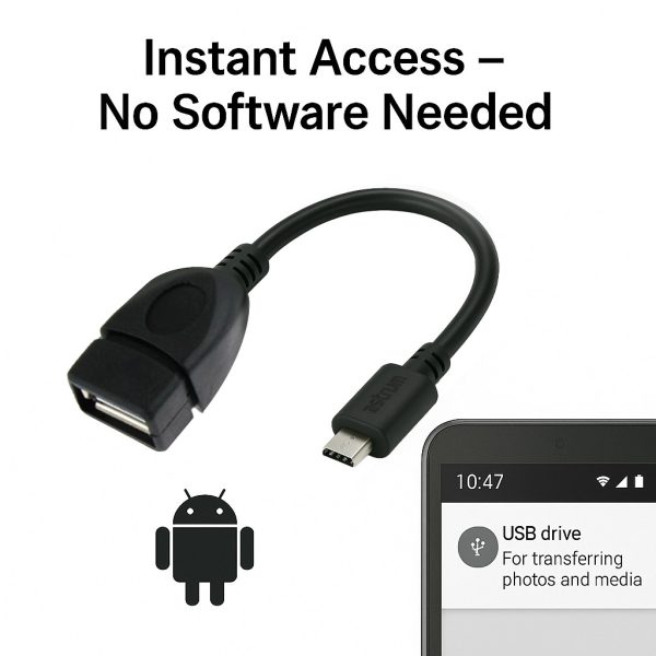 Versatile Applications: Use the OTG cable for various tasks such as transferring photos and videos from digital cameras to smartphones or tablets, connecting external storage devices to expand device storage capacity, or using USB peripherals for enhanced productivity on the go.