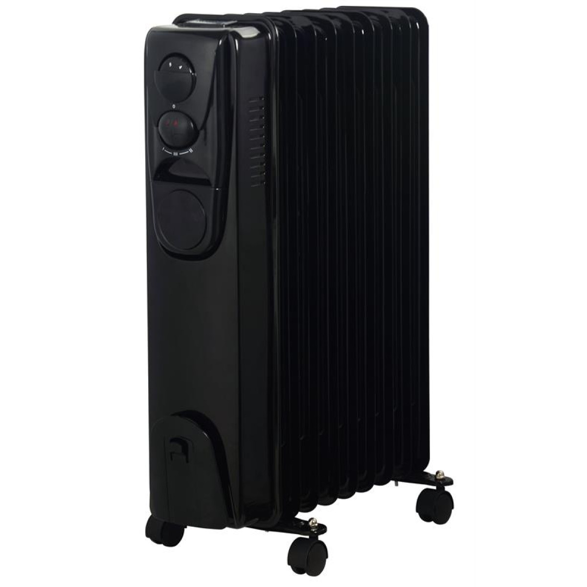 Alva 9 Fin Oil Filled Heater Glossy Black- Powerful 2000w Rated Power , Sleek And Elegant Design, 3x Heat Settings, Adjustable Thermostat, Portable And Lightweight, 4 X Castor Wheels For Easy Manoeuvrability, Ideal For Small to Mid-Sized Rooms, Equipped With Thermal Cut-Off, Safety Tip-Over Switch, Automatic Overheat Protection, Colour Glossy Black , Integrated Cable Caddy For Tidy Storage, Retail Box 1 Year Warranty