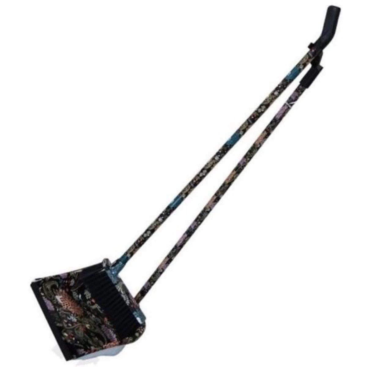 • Long Broom and Stand Up Dustpan Set Black Floral Design