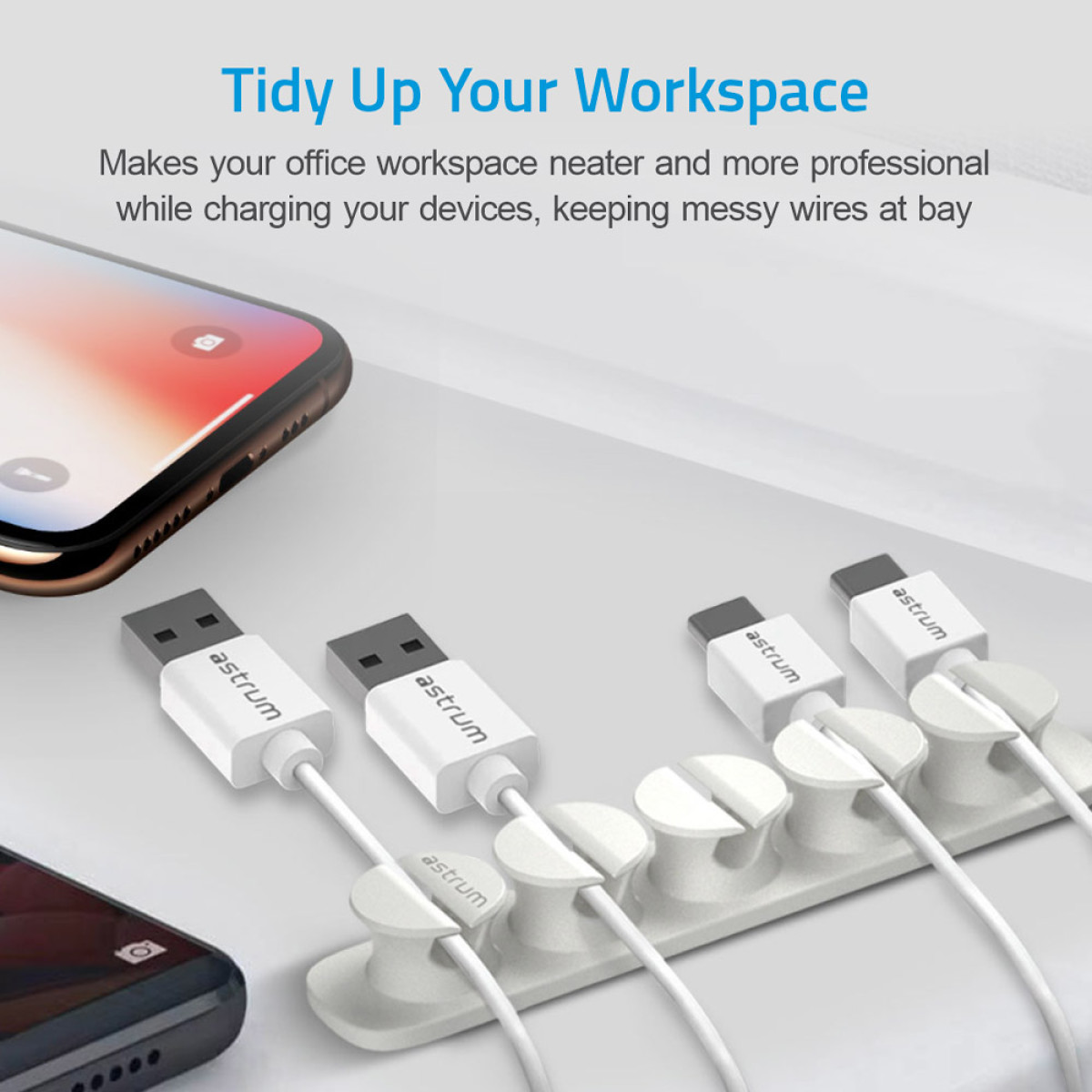 Perfect for both personal and professional settings, these clips are crafted to withstand daily use, maintaining their effectiveness over time. Say goodbye to cable chaos and welcome a more organized, productive environment with the Astrum CO110 Cable Organizer Clips.