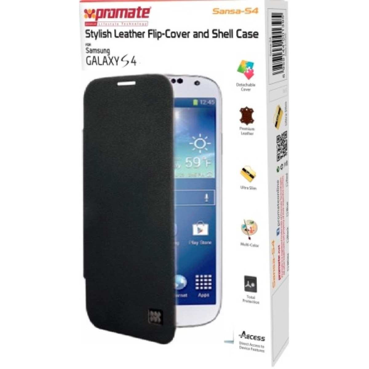 Promate Sansa-S4 Stylish Leather Flip-Cover and Shell Case for Samsung Galaxy S4-Black Retail Box 1 Year Warranty