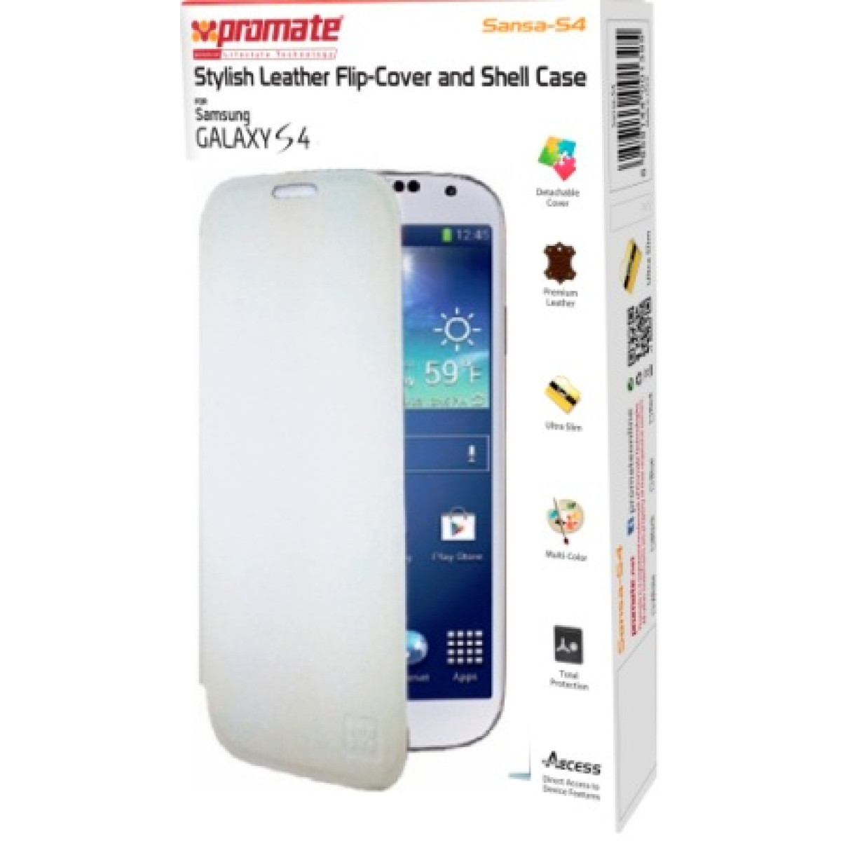 Promate Sansa-S4 Stylish Leather Flip-Cover and Shell Case for Samsung Galaxy S4-White Retail Box 1 Year Warranty