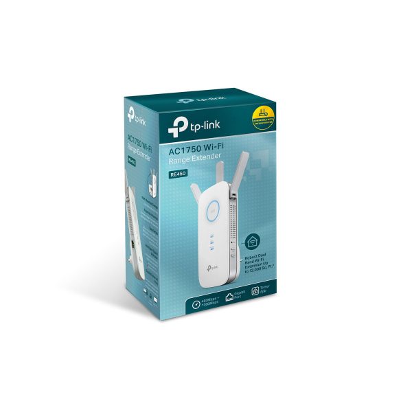Boost Your Wi-Fi Coverage Up to 10,000 sq ft* Tired of Wi-Fi “dead zones”? The TP-Link AC1750 Wi-Fi Range Extender connects to your router wirelessly, strengthening and expanding its signal into areas it can’t reach on its own. The device also reduces signal interference to ensure reliable Wi-Fi coverage throughout your home or office. Super-Fast Speed Next Generation AC Wi-Fi TP-Link’s RE450 comes with next generation 802.11AC Wi-Fi technology, it’s 3 times faster than the standard 802.11n speeds. The RE450 delivers fast speeds of dual band Wi-Fi up to 1.75Gbps, providing reliable connections for bandwidth-intensive tasks like HD/4K streaming, lag free gaming, large file downloads. Gigabit Wired Speed A gigabit Ethernet port turns the extender into a wireless bridge, letting you connect a wired device like a Blu-ray player, gaming console, DVR, or smart TV to your Wi-Fi network. Easy Installation & Quick Position Easy Installation with RE Button The extender RE450 works with any standard wireless router. Instantly connect the RE450 to a router by pressing the extender’s RE button followed by the router’s WPS button (if available). Once connected with an existing router, you can take RE450 anywhere within the wireless range of the existing router, no more further configurations.