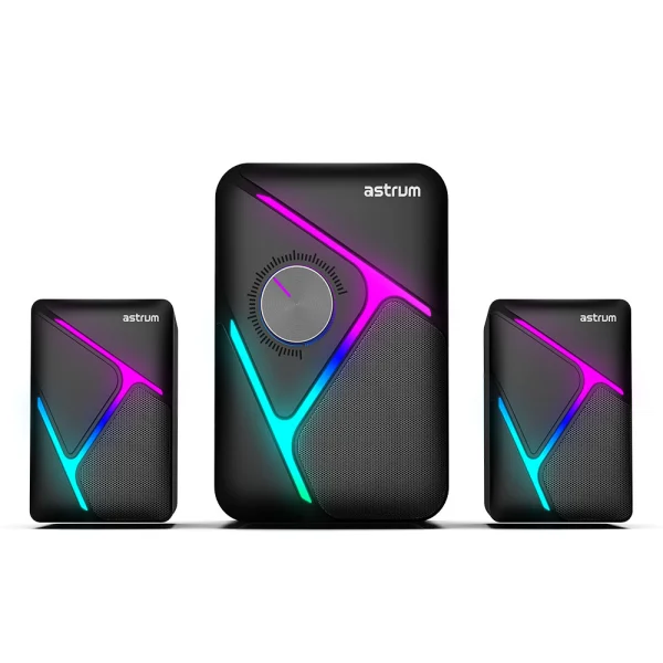 Elevate your multimedia and gaming encounters with the Astrum 2.1CH Multimedia USB Speaker – SM030. Meticulously designed for sophistication, this premium speaker promises an immersive auditory journey, boasting a robust 11W RMS standard audio output for an unparalleled sonic experience. Whether you’re immersed in music, hosting a lively party, or engaging in intense gaming sessions, brace yourself for the enchanting blend of crystal-clear audio and pulsating bass.